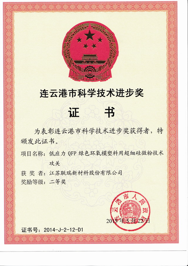 ニュースについて 首頁>ニュース>ニュースについて NOVORAY新材料は光栄に“連雲(yún)港市科學(xué)技術(shù)進(jìn)歩の二等賞」を獲得 2015年05月30日 江蘇NOVORAY新材料株式會社は擔(dān)當(dāng)して実施した「低応力QFP緑エポキシ型プラスチック用極細(xì)シリコン粉末技術(shù)攻略プロジェクト」は、光栄に「連雲(yún)港市科學(xué)技術(shù)進(jìn)歩の二等賞」を獲得しました。