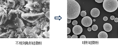【基本說明】:球形硅微粉是以精選的不規(guī)則角形硅微粉作為原料,通過火焰熔融法加工成球形,從而得到的一種比表面積小、流動性好、應(yīng)力低的球形二氧化硅粉體材料。